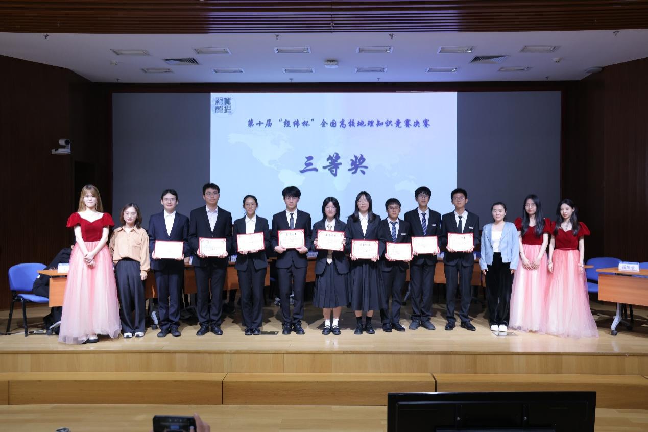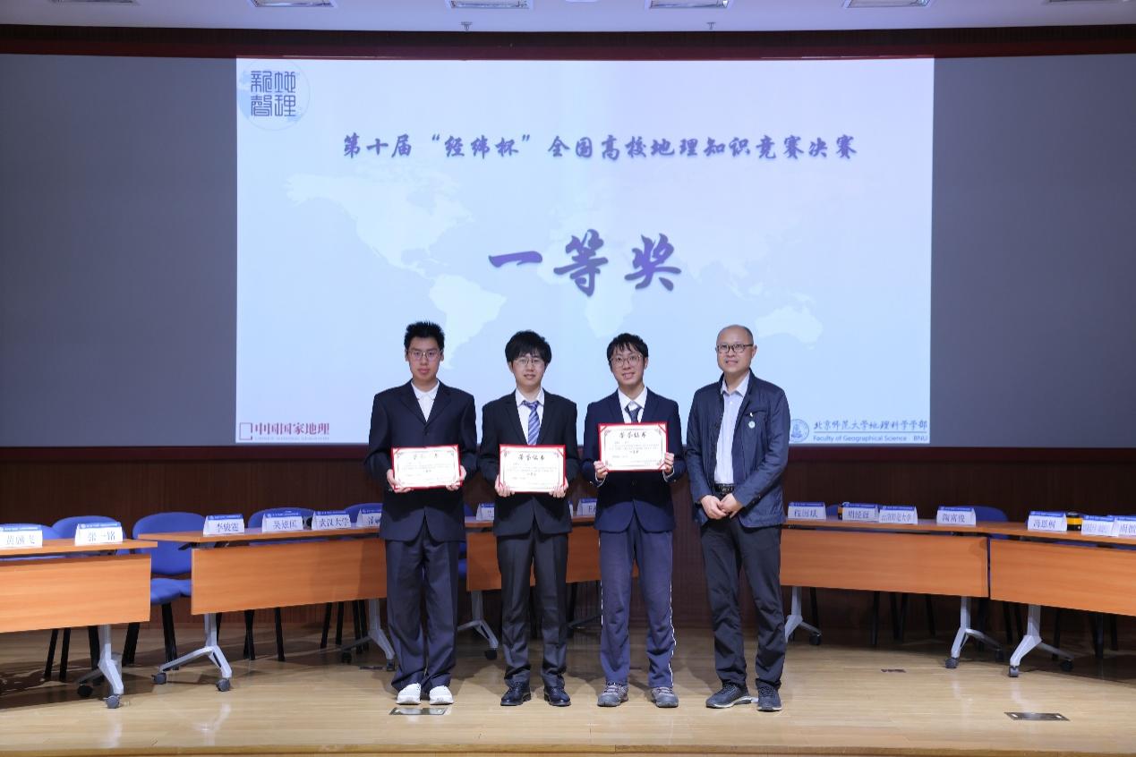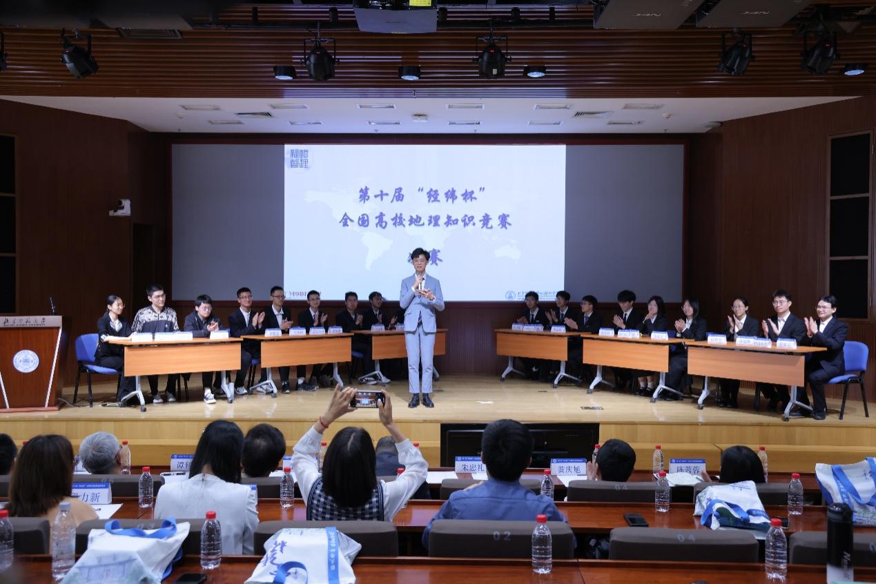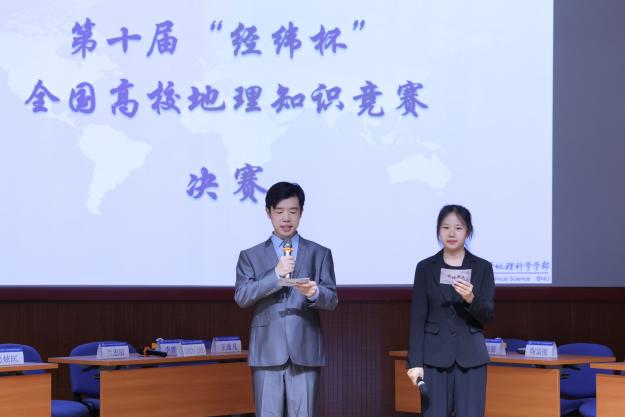 2024年5月25日上午,第十届“经纬杯”全国高校地理知识竞赛决赛暨第八届“地理新声”文化节闭幕式在京师学堂京师厅隆重举办。今年的“经纬杯”比赛共有44支来自全国各地的高校队伍参赛,132名参赛选手,盛况空前、竞争激烈。经过初赛、复赛的激烈角逐,来自北京大学、武汉大学、云南师范大学、中山大学、足球欧洲杯 (珠海校区)、足球欧洲杯 (北京校区)六支队伍突出重围,齐聚京师学堂。《中国国家地理》杂志社的社长兼总编辑李栓科、《中国国家地理》杂志社品牌推广总监段力新和首都师范大学资源环境与旅游足球欧洲杯的团委书记丁梦娇担任特邀嘉宾,足球欧洲杯 部长李小雁、常务副部长吴云峰、党委副书记陈蓉蓉,学部教师代表谭利华、朱忠礼、黄大全、黄庆旭,学部团委书记石月婵出席了本次活动。线上线下共有千余名校内外师生线上观看了本次比赛。本次活动由2022级本科生秦书华、2021级本科生陈奇主持,由2021级本科生梁名智担任主考官。