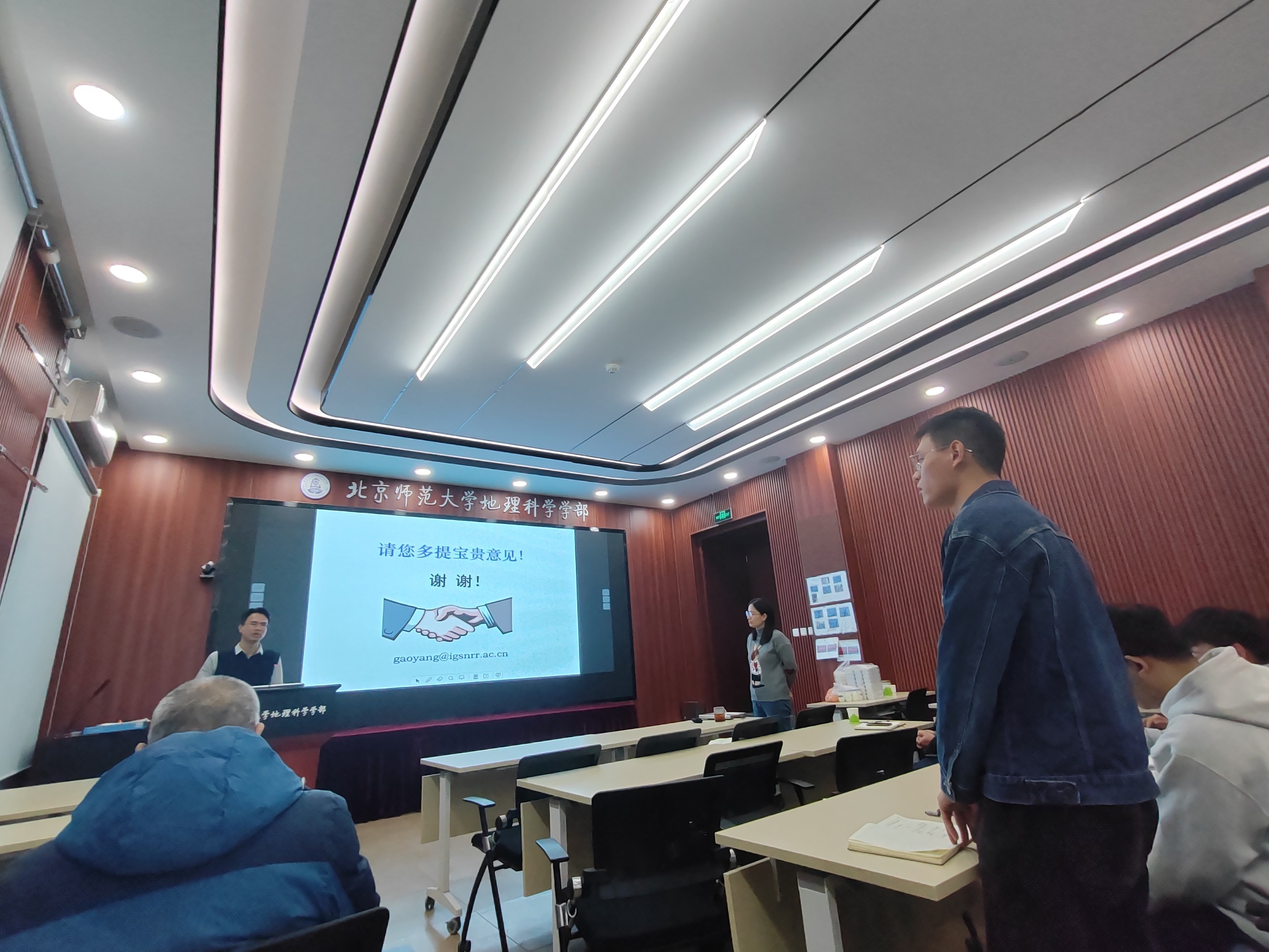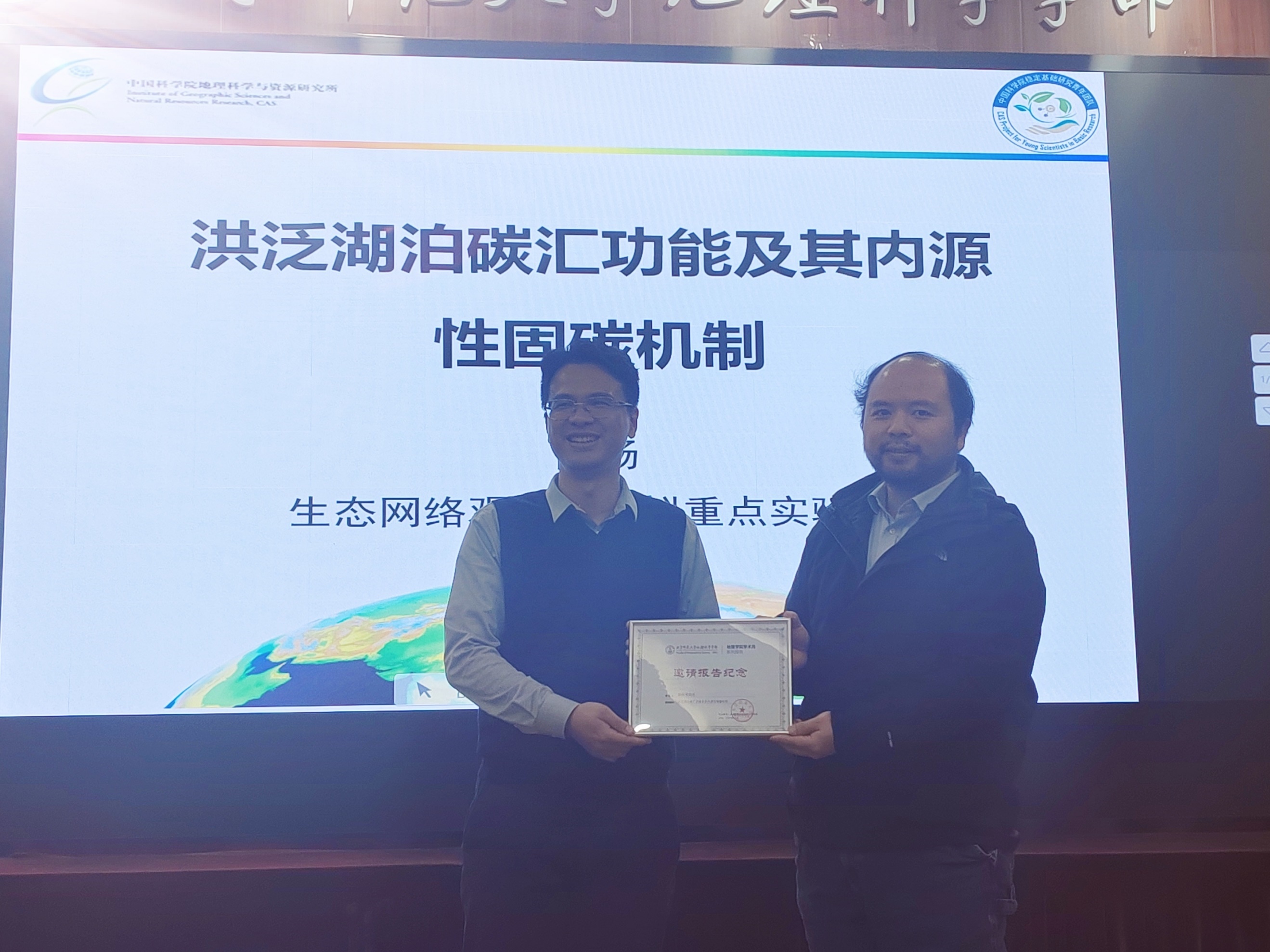 报告结束后,高扬研究员与现场师生就“土壤侵蚀是碳源还是碳汇”等诸多问题进行了热烈的交流和讨论。杨扬副教授对高扬研究院的精彩报告表达了真挚的感谢,地理足球欧洲杯自然地理研究所所长张卓栋副教授为高扬研究员送上了邀请报告纪念证书,并邀请与会师生共同合影留念。