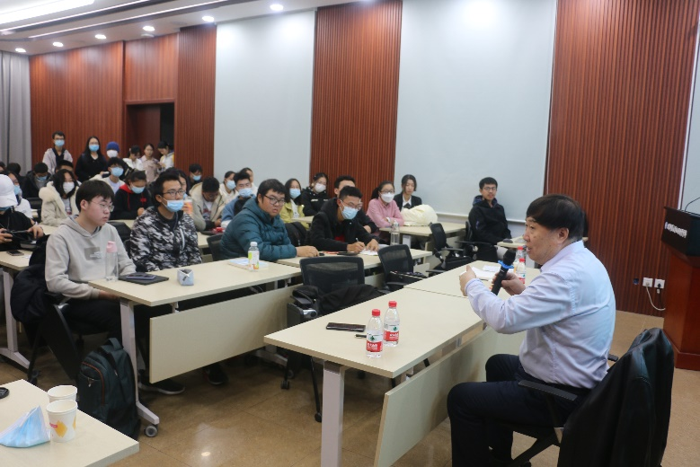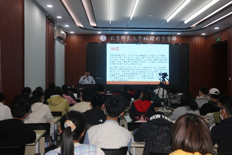 在互动提问环节,傅伯杰院士对现场及线上的提问予以耐心解答,讲座过程中的气氛十分热烈活跃。讲座结束后,傅伯杰院士依然兴致勃勃地与在场的同学们就学科方向认知、人生与学业规划进行了深入交流,使刚刚步入地理学科之门的新生获益匪浅。最后,李强教授进行总结发言,本次讲座在师生们对傅院士致谢的热烈掌声中圆满结束。