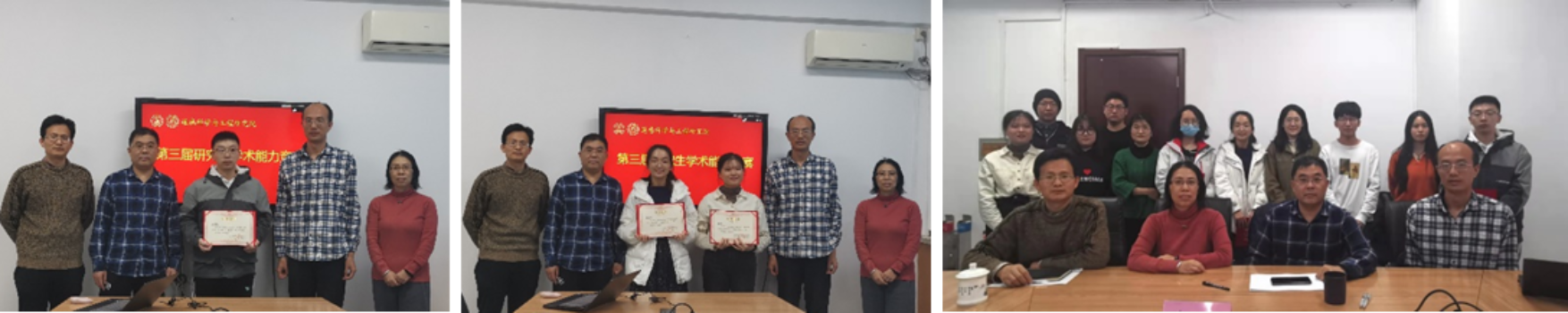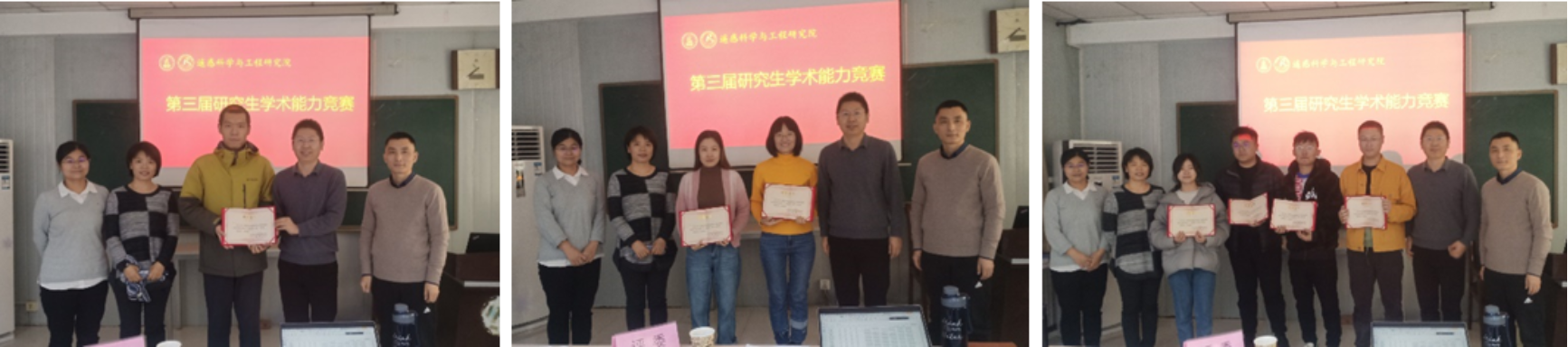 经过紧张激烈的竞赛角逐,评委根据参赛学生的PPT制作水平、演讲表现力、科研技术创新性、研究方法、思维与反应能力等从多个方面进行考察,经综合打分,每组各评选出获奖选手一等奖1名、二等奖2名、三等奖4名。评委老师们为获奖选手颁发了奖状并合影留念。同时,本次大赛为鼓励2021级硕士新生踊跃参加,对2021级硕士新生选手颁发了鼓励奖,以激励更多的同学积极参与学术活动。