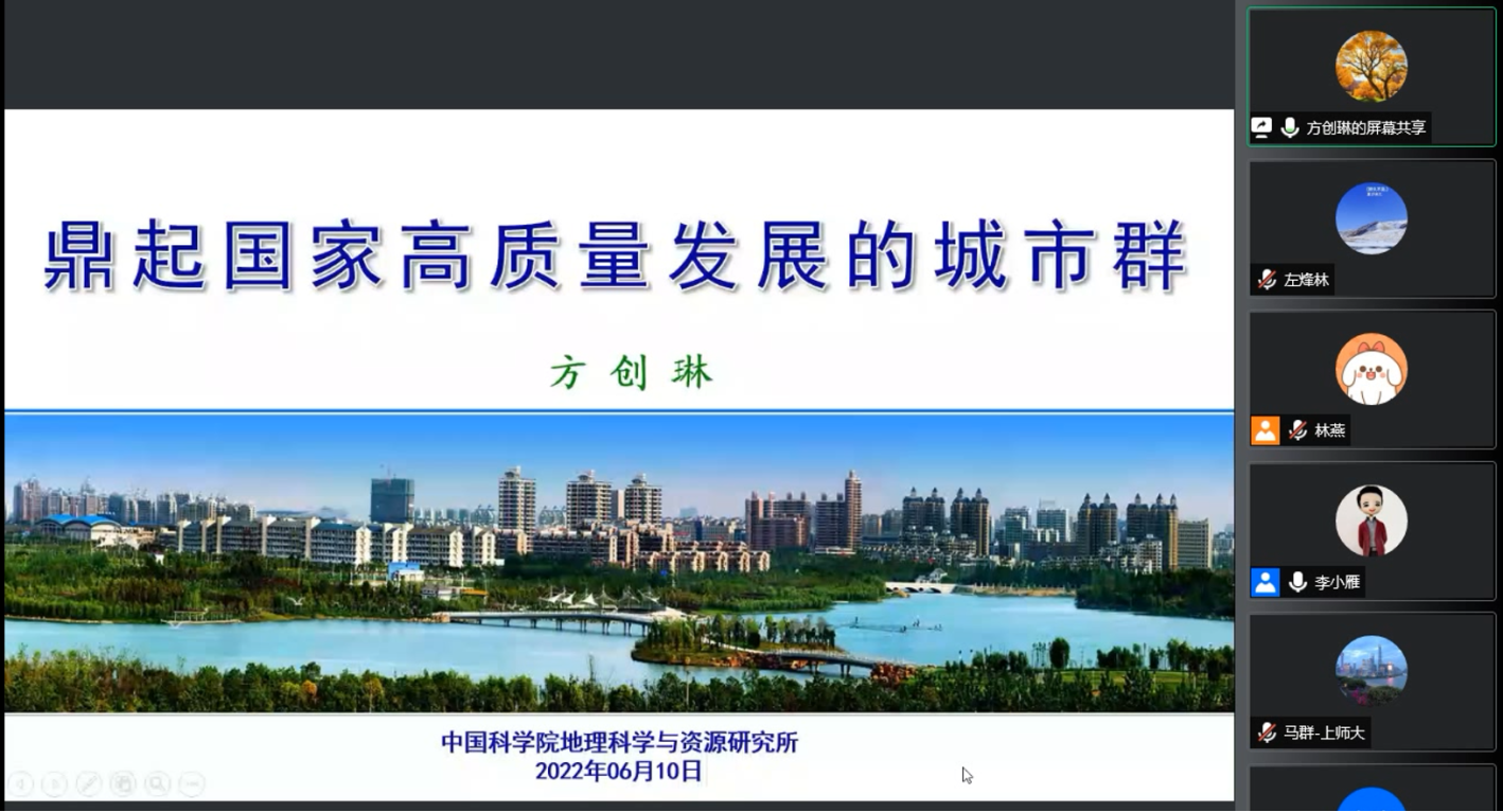 2022年6月10日晚,题为“鼎起国家高质量发展的城市群”的资源科学前沿系列讲座第五期成功举办。讲座邀请中国科足球欧洲杯特聘研究员、国际欧亚科足球欧洲杯院士、国家万人计划领军人才、教育部长江学者特聘教授、中国科足球欧洲杯地理资源所区域与城市规划研究中心主任方创琳研究员为主讲嘉宾,由李小雁教授主持,董孝斌教授、刘学敏教授、王佩教授、杜恩在副教授等校内外210余名师生参会。讲座为线上会议形式,持续近2小时。
