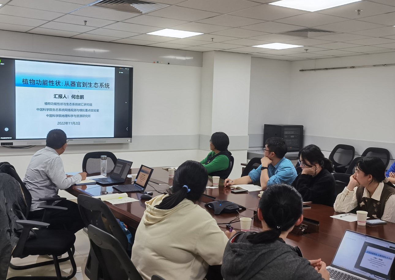 何念鹏研究员从植物功能性状及其与生态系统功能的关系出发,围绕以下三部分内容进行报告。首先,他详细介绍了植物功能性状的定义和分类,并逐一分析了近年来植物功能性状在空间变异规律,与群落构建关系等方面取得的最新进展。其次,何念鹏研究员指出先前研究存在的诸多局限,例如缺乏与性状配套的群落结构数据、对叶片气孔及解剖属性关注不足、难以进行性状在器官-群落-生态系统的尺度拓展等。何老师认为未来应从多性状-多物种-多功能代表的多维度出发,并结合自己课题组构建的一系列新参数,新方法,提倡建立以功能性状为核心的整合生态学理论框架。最后,何念鹏研究员着重介绍了其课题组最新发展的一套植物功能性状网络方法,从其构建的理论基础,关键参数到实际验证,详细论述了植物性状网络在解释群落空间变异,识别核心性状等众多角度的成功案例及广阔前景。同时,何老师还勉励大家努力构建新理念,新技术,新视角,最终取得创新成果。