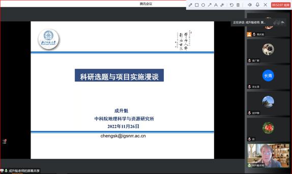 此后,郧文聚研究员、宋长青教授、江源教授、刘绍民教授、杜恩在副教授分别就学科建设中基础研究、课程体系、学科交叉以及关键核心技术等问题进行了交流和讨论。