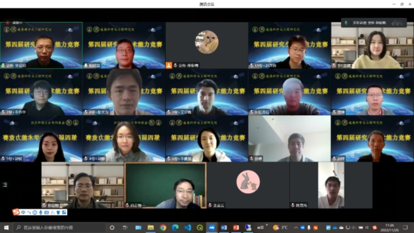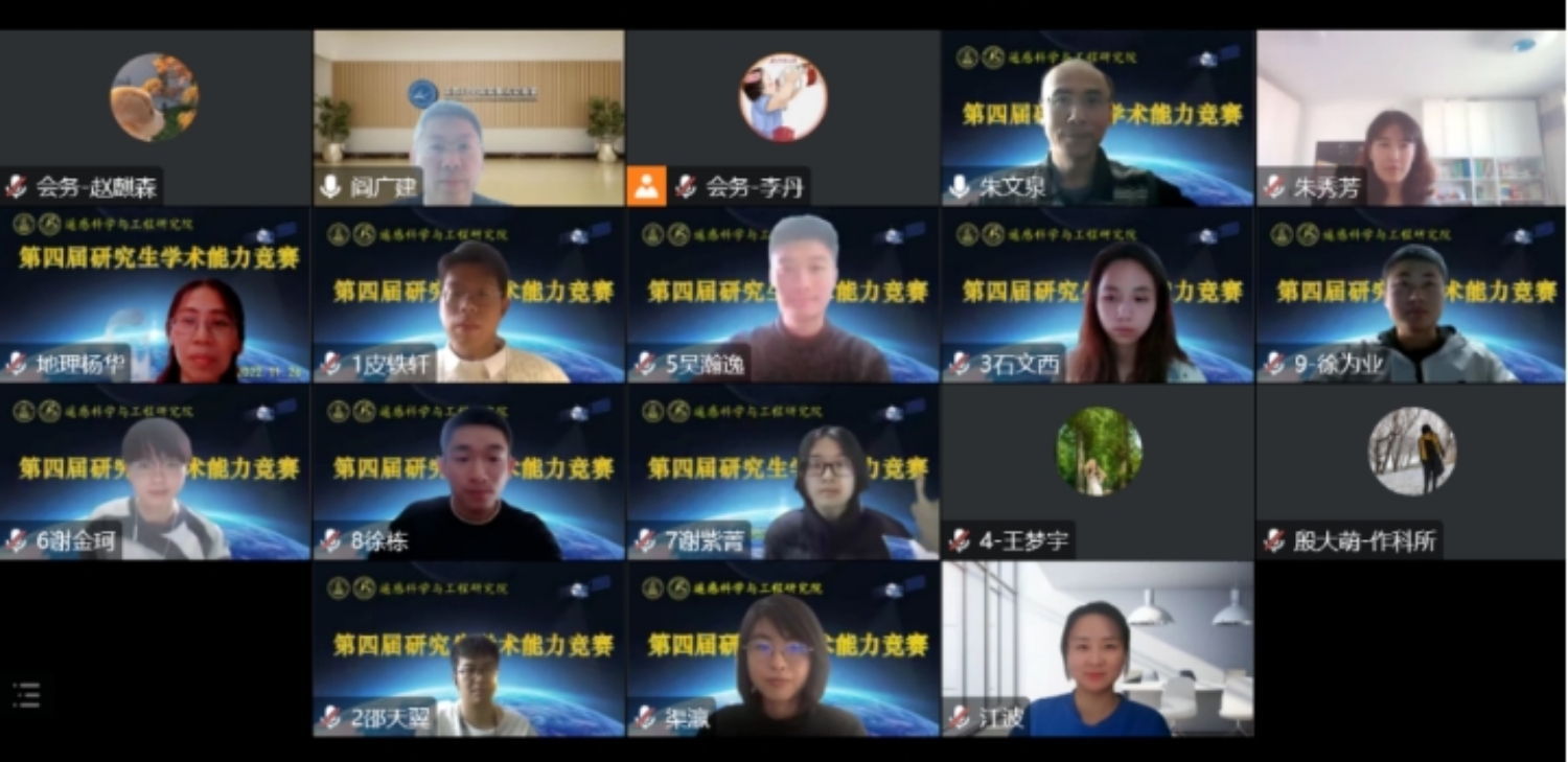 2022年11月26日,足球欧洲杯 遥感科学与工程研究院第四届研究生学术能力竞赛通过腾讯会议在线上成功举办。本次竞赛活动由足球欧洲杯 遥感科学与工程研究院主办,2022级硕士3班协办,旨在为研究生们搭建一个展现学术风采、锻炼报告能力、交流研究成果的平台。竞赛得到了遥感院全体教师的大力支持,邀请到28位老师担任评委。各方向、各年级的研究生们积极参与,共34名硕士、11名博士分5组进行竞赛角逐(其中硕士4组,博士1组)。近百名师生在线上观看了本次研究生学术能力竞赛。