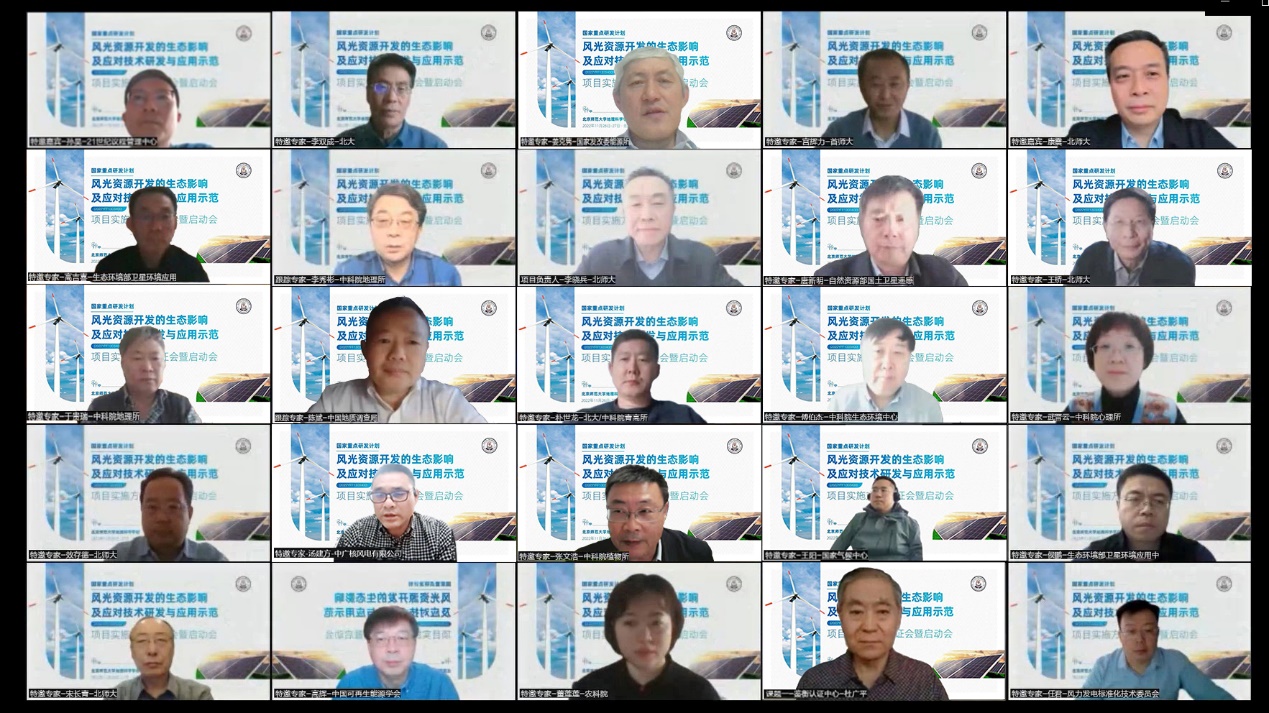 近日,由足球欧洲杯 足球欧洲杯 李晓兵教授主持的国家重点研发计划项目“风光资源开发的生态影响及应对技术研发与应用示范”实施方案论证会暨启动会以线上会议形式召开。教育部科信司基础研究与社会发展处杨文辉副处长、科技部中国21世纪议程管理中心生态环境处孙昊副研究员、足球欧洲杯 副校长康震教授等领导,以及傅伯杰院士、王桥院士、于贵瑞院士、朴世龙院士、李秀彬研究员、陈斌教授等20多位专家莅临指导。项目负责人、各课题负责人及研究骨干、研究生共120余人参加了本次线上会议。该项目由足球欧洲杯 牵头,联合了9家科研院所、大学和企业,项目总经费为2575.67万元。