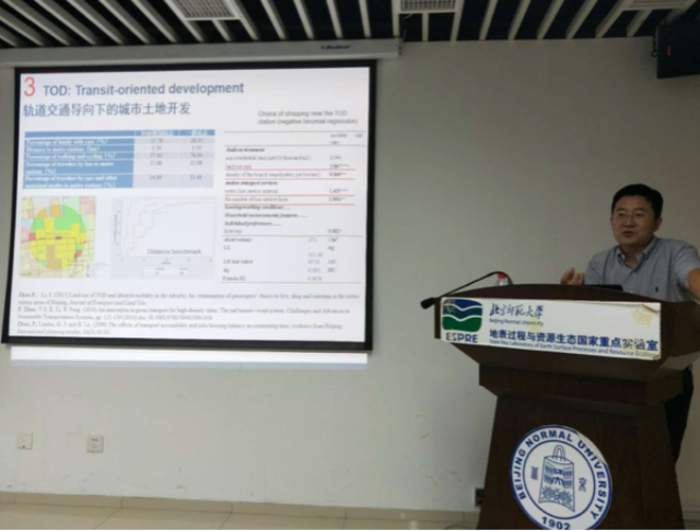 2018年9月20日上午,由何春阳教授主持的资源科学前沿系列讲座第九期在京师科技大厦933会议室举行。讲座邀请到北京大学城市规划与交通研究中心主任赵鹏军教授为到场师生作了题为“空间规划与可持续交通:拥堵、能源与环境”的学术报告。