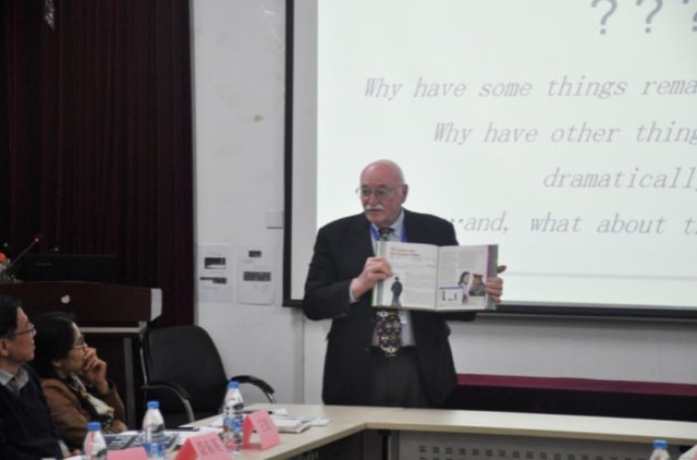 James B. Kracht教授在报告中主要讲解了地理教科书的变化、现状和发展等问题。他指出,100多年来,地理教科书经历了内容由简单到多样、问题由浅显到深入的变化过程。而未来地理教科书的内容可能会受到不同因素的影响而发生持续性的变化。在这些影响因素中,地理学科本身的发展以及教科书作者对教科书内容的影响是有限的,相反,国家和地方政府的标准制定、教育研究、传统要求、技术、金钱等因素会带来重要影响。