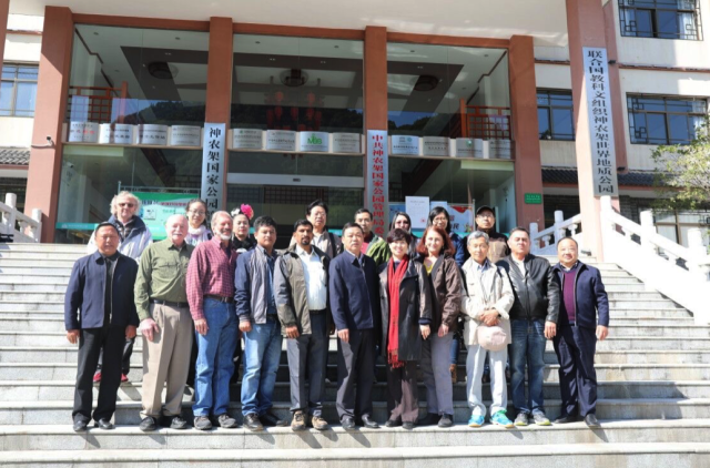参会嘉宾在神农架国家公园管理局门口合影