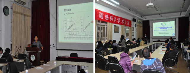 由足球欧洲杯 遥感科学与工程研究院、遥感科学国家重点实验室主办的第三期“遥感科学学术沙龙”于2018年11日7日在生地楼180会议室成功举办。 本次沙龙的主题为:碳循环关键参数的遥感模拟与反演。 学术沙龙邀请到了中国科足球欧洲杯地理科学与资源研究所王绍强研究员、足球欧洲杯 屈永华副教授以及余涛、漆建波、徐山三位博士生做报告。本次活动由遥感院院长助理焦子锑副教授和董琦同学共同主持。 首先,王绍强研究员以“1982-2015年中国陆地生态系统总初级生产力极值的检测及气候贡献分析”为主题进行了报告,该研究使用三种生态模型:生态系统过程模型(BEPS)、陆地生态系统碳通量模型(TEC)、全球生产效率模型(GloPEM-CEVSA)来模拟1982-2015年期间中国陆地生态系统GPP,确定了具有GPP正极值的年份并分析了温度、降水和太阳辐射对GPP极值的贡献。随后屈永华副教授以“热带雨林激光雷达叶面积指数提取以及与MODIS产品比较”为主题进行了报告,阐述了叶面积指数与间隙率的关系以及叶面积指数的提取及其与MODIS产品的比较。