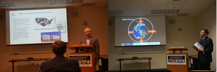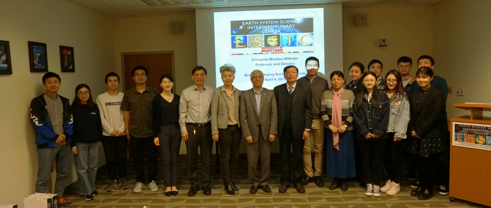 4月4日,项目代表团一行来到马里兰大学地球系统交叉学科研究中心(ESSIC,Earth System Science Interdisciplinary Center)。中心主任Fernando Miralles-Wilhelm教授,JGCRI主任Ghassem Asrar教授热情地接待了代表团的到来。Miralles-Wilhelm教授首先介绍了ESSIC的基本情况与主要研究任务。Ghassem Asrar教授相应介绍了JGCRI的基本情况与研究关注点。随后,双方分别进行了学术报告。项目办协调人叶涛教授首先介绍了项目的总体进展。随后,中科院大气物理所孔祥慧博士、足球欧洲杯 高原博士、杨赛霓教授和叶涛教授分别代表项目的四个课题,就项目在未来气候预估的模式比较、未来全球农作物暴露度和脆弱性预估、全球变化基础设施风险评估的模式以及热点区青藏高原全球变化风险评估等的进展做了学术报告。JGCRI主任Ghassem Asrar教授和研究员Sha Yu博士就目前中心在全球变化评估模型(GCAM)的开发,特别是在中国区的区域模型研制,在未来能源安全、粮食安全、水资源利用等方面与中国机构开展的合作进行了介绍。在此过程中,还特别谈到了与中国机构在学生交流培养方面创造的条件。在讨论阶段,项目负责人史培军教授首先就他对当前全球变化风险研究的热点问题,特别是增暖引起的环境问题、城市化,以及综合风险防范的凝聚力模型等进行了介绍。Ghassem Asrar教授进行了热烈地回应,并相应地谈到了JGCRI在近期参加IPCC评估报告以及UNEP出版的Global Environment Outlook中的工作。双方还就进一步开展合作研究、学生联合培养等问题进一步交换了意见。