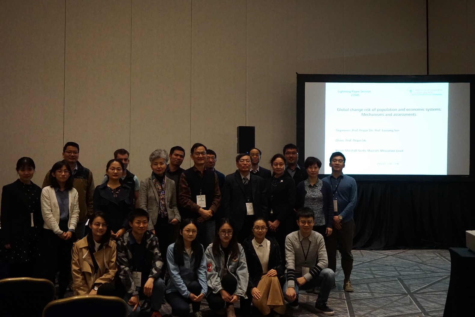 4月6日上午,由项目组织的“Global change risk of population and economic systems: Mechanisms and assessments “专题分会场在会议酒店正式举行。会上,分会场主席、项目负责人史培军教授首先对会场安排进行了介绍。项目办叶涛教授简要介绍了项目执行三年以来取得的重要进展。随后,项目组骨干中国科足球欧洲杯大气物理所孔祥慧博士、足球欧洲杯 李宁教授、杨赛霓教授、叶涛教授以及参加项目的博士硕士研究生分别做了学术报告。此次分会场还吸引到相关领域的研究人员日内瓦大学的Guillaume Rohat博士、华东师范大学的蔚丹丹同学前来参与,并分别就全球变化人口热浪风险和健康风险进行了学术报告。在总结阶段,史培军教授阐述了他关于地理协同论、地球工程、综合风险防范的凝聚力模型等新理念和新理解。分会场的最后,联合主席马里兰大学的孙来祥教授对学术报告进行了点评,并对深化项目研究提出了宝贵的意见和建议。