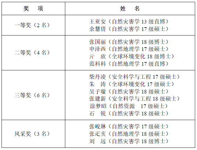 本次学术竞赛对于活跃减灾院研究生学术氛围,相互切磋与交流,达到共同提高、共同进步,起到了重要作用。