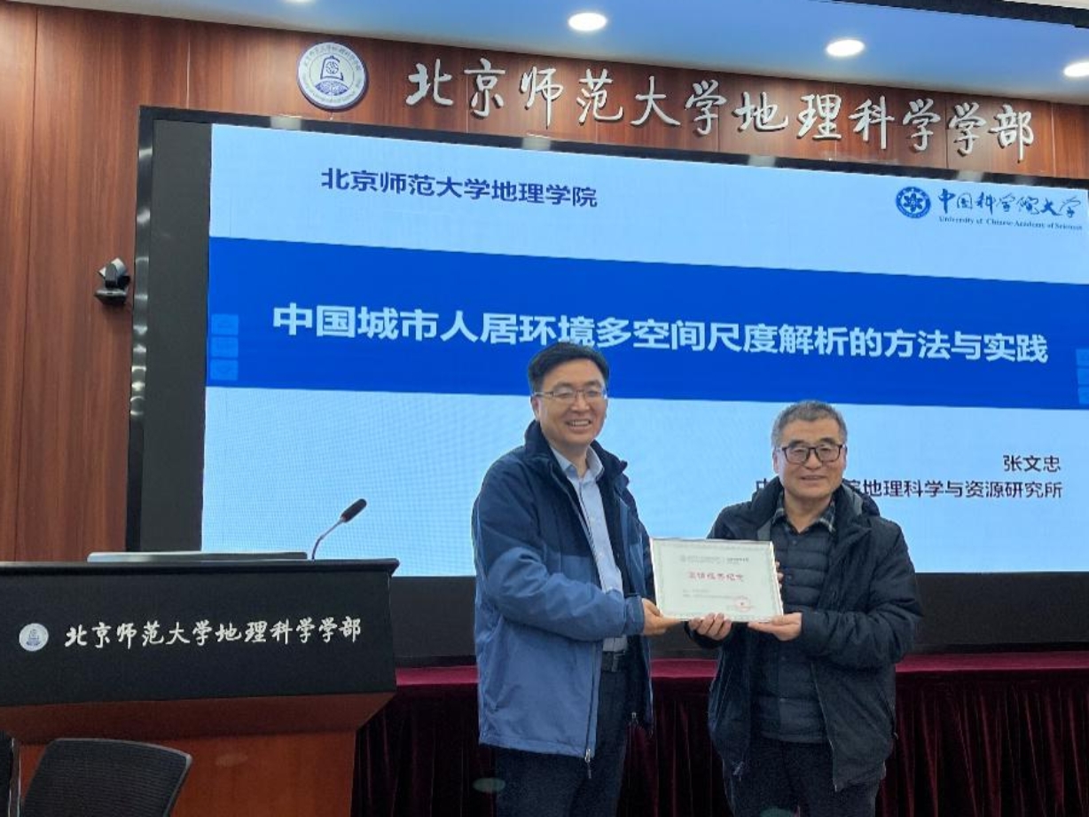 报告会开始,地理足球欧洲杯院长张科利教授代表全院师生表达了对张文忠研究员的欢迎与感谢,并为张文忠研究员颁发了特邀报告纪念。随后宋金平教授现场介绍了张文忠研究员的学术贡献和社会影响。