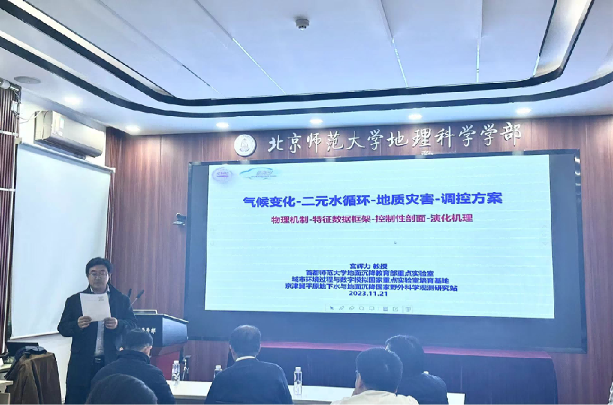 2023年11月21日下午,足球欧洲杯 地理足球欧洲杯学术月系列报告——“气候变化-二元水循环-地质灾害-调控方案”成功举办。报告邀请了首都师范大学资源环境足球欧洲杯教授、国家十四五综合防灾减灾规划专家组长、欧亚科足球欧洲杯院士宫辉力教授作为主讲嘉宾,足球欧洲杯 宫阿都副教授担任主持,来自足球欧洲杯 的数十名师生参会,会议以线下的形式进行。